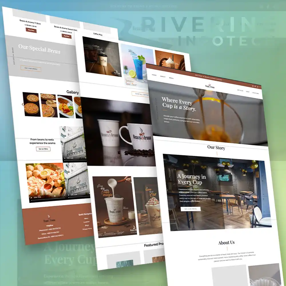 This website serves as a demo or showcase for a modern café or restaurant (Beans N’ Aroma). It highlights the menu, ambiance, location, and provides a sleek, responsive design typical for the hospitality industry.